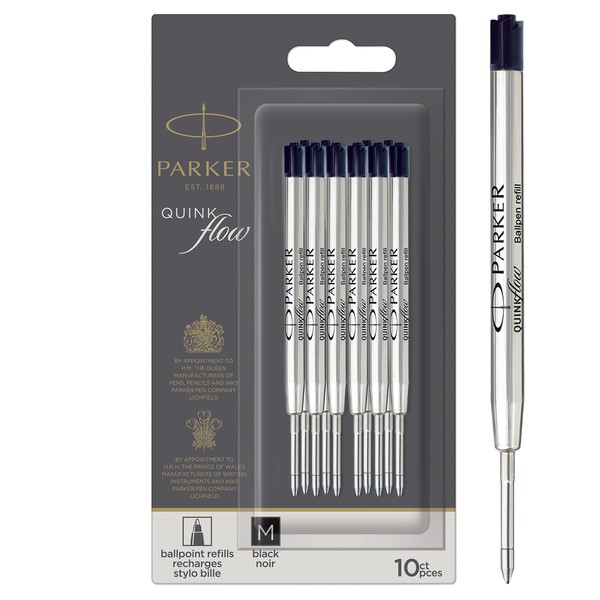 Parker Ballpoint Pen Refills Medium Point Black QUINKflow Ink 10 Count