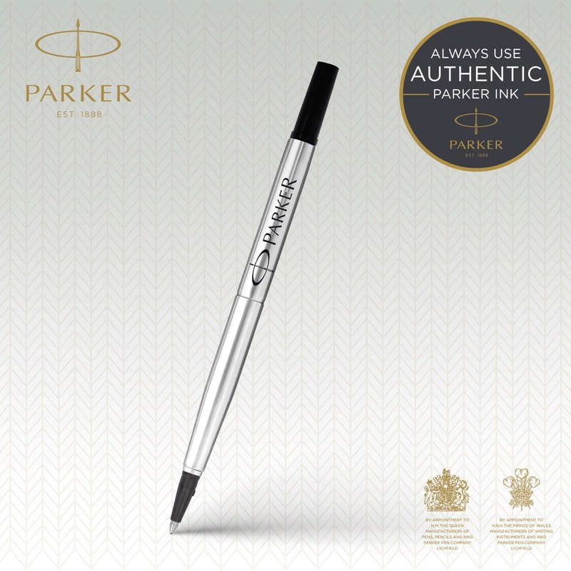 - Original Parker rollerball pen refills, 0.5mm fine point, black Ink, pack of 2.