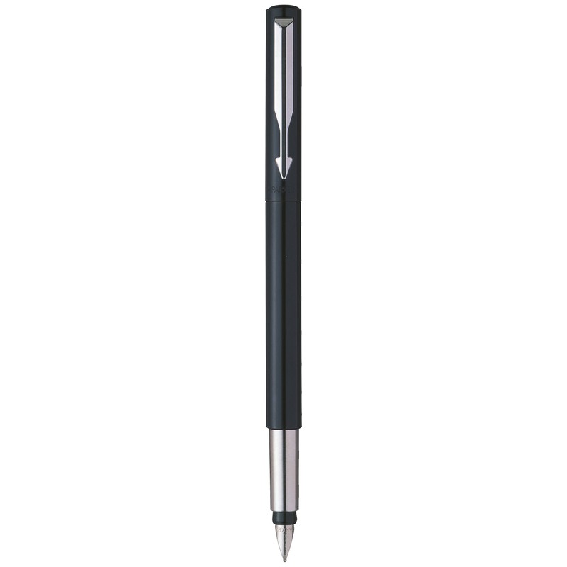 Parker Vector Stainless Steel Trim Fountain Pen with Medium Nib, Gift Boxed - Blue Ink