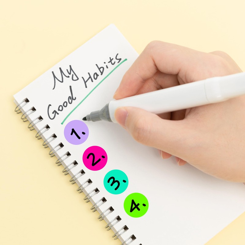 • 3/4" round stickers. Stick to all surfaces, even clothing! Easily write on them with marker.