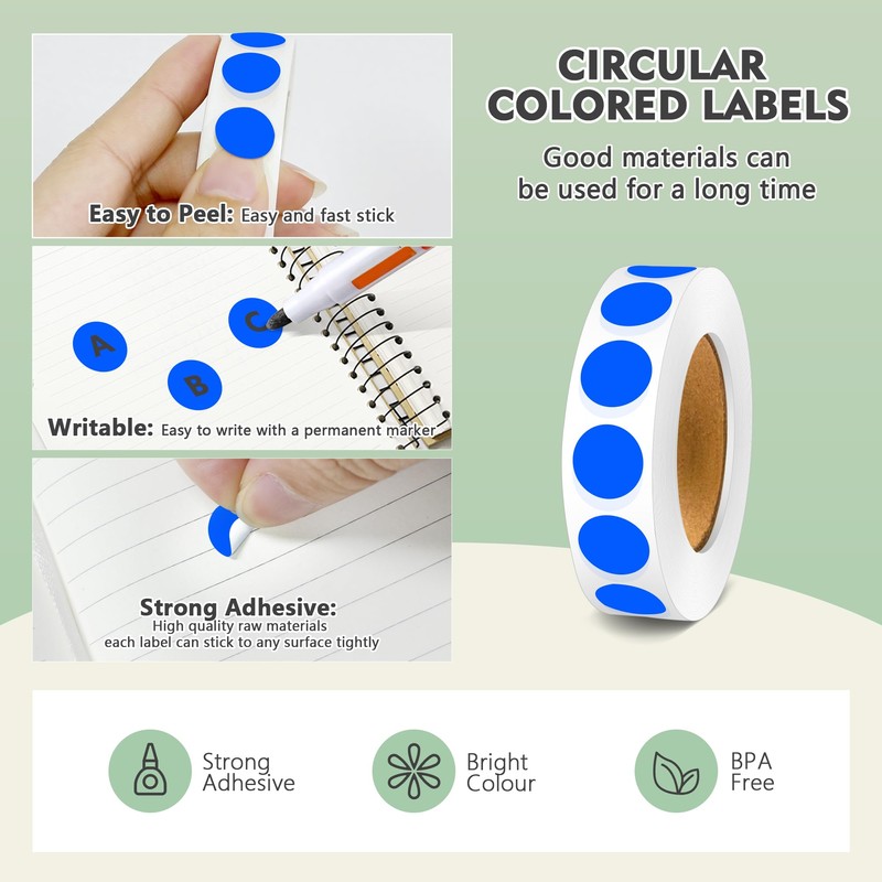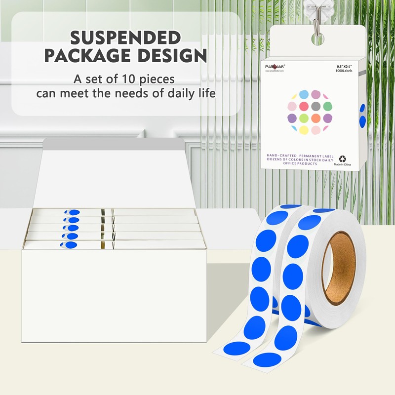 - The package includes 10 rolls total 10000PCS 0.5 Inch diameter dots round stickers in a roll, Permanent Adhesive keeps each 1/2" circle sticker firmly in place on most surfaces, each roll is individually packaged.