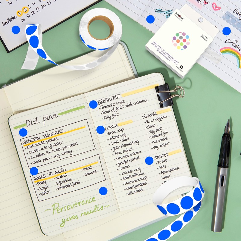 - Semi gloss dots are made from high quality paper that is easy to write on with a felt tip marker