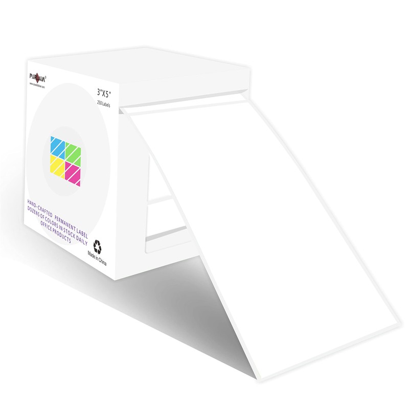 PARLAIM 3" x 5" Adhesive Color Cod Stickers,250 per Dispenser Box Roll Square Label Inventory Stickers (White)