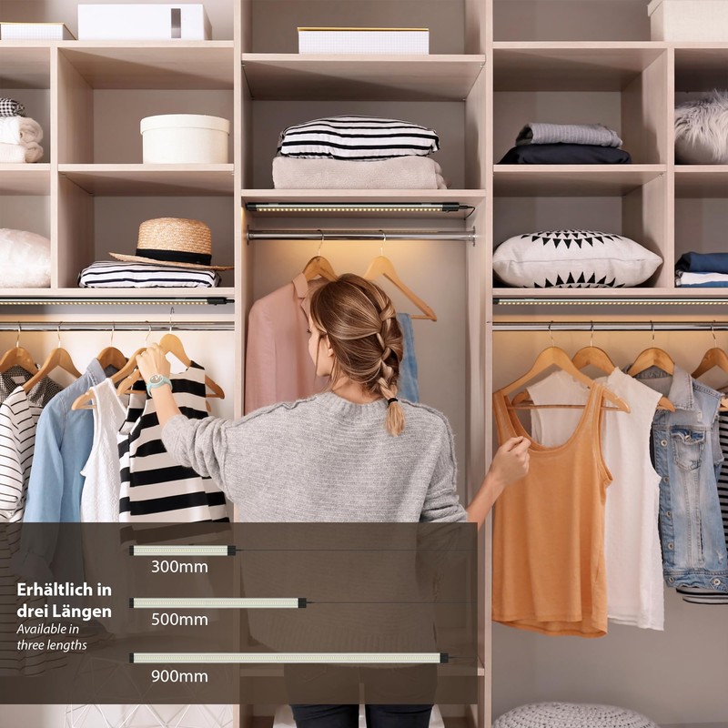 The extra flat design 300 x 9 x 30 mm and the simple design of the under-unit lamp allow a variety of uses. The light strip can be used as an under-unit light in the kitchen, as cabinet lighting, work light and as a workshop lamp.