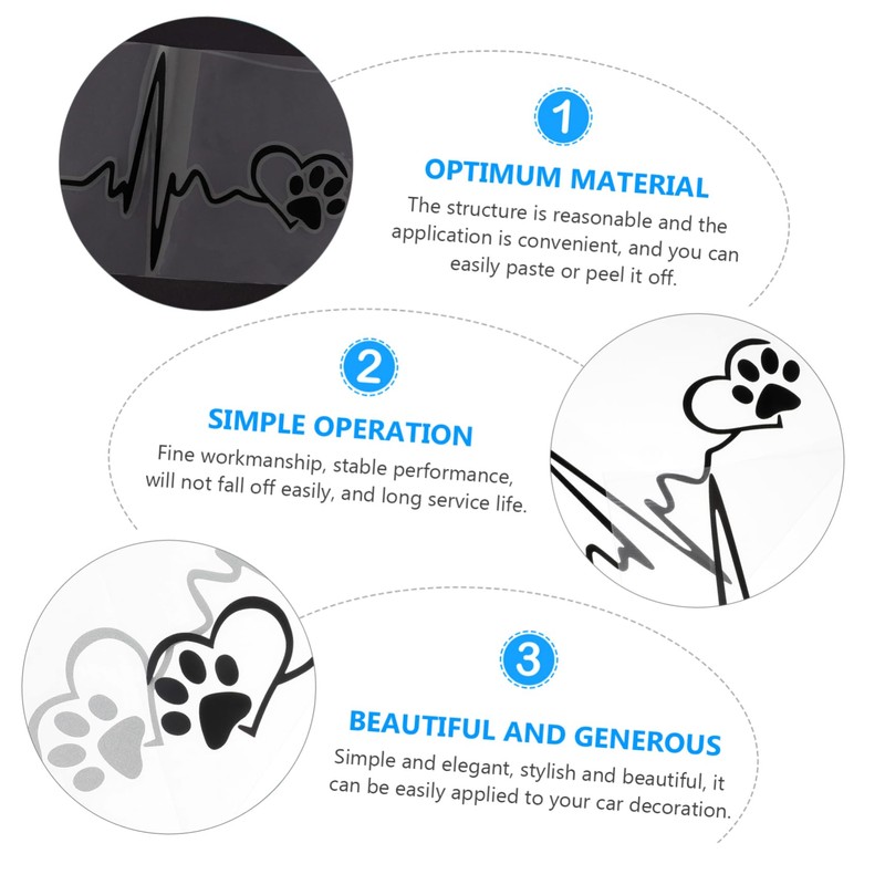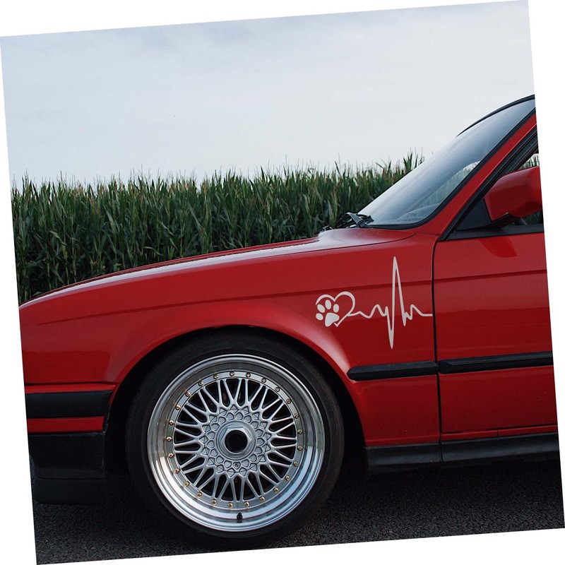 Parliky 4Pcs Heartbeat Dog Paw Print Stickers for Car Stylish Decals Easy to Apply Decorative Stickers for Automobile Durable Residue Cute Car Accessories