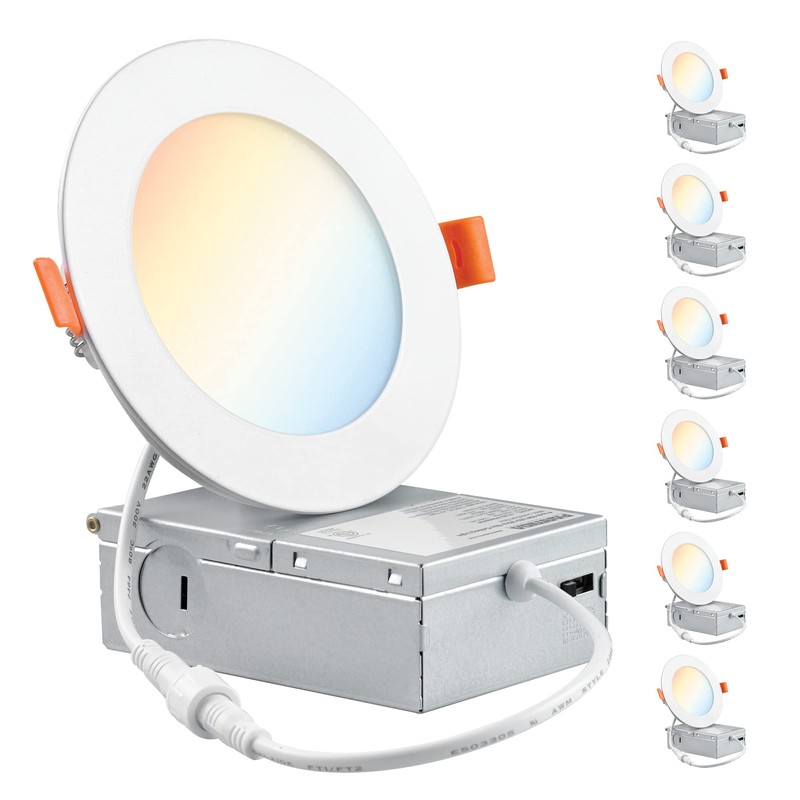 PARMIDA (6 Pack) 4 Inch Dimmable 5CCT Ultra-Thin LED Recessed Ceiling Light with Junction Box, 5 Color Selectable 2700K/3000K/3500K/4000K/5000K, 9W, Canless Wafer Slim Panel Downlight, IC Rated, ETL