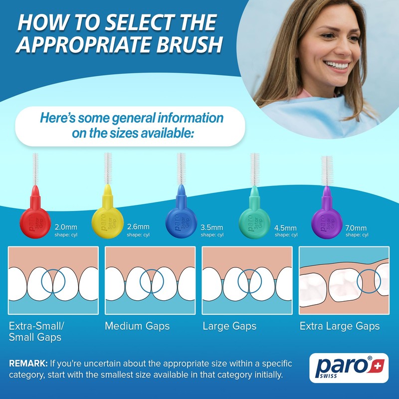 - Natural Form Adaptation: Designed to follow the natural form of interdental spaces, Paro 3Star brushes offer a customized cleaning experience. The triangular shape aligns with your teeth's contours, supporting thorough cleaning.