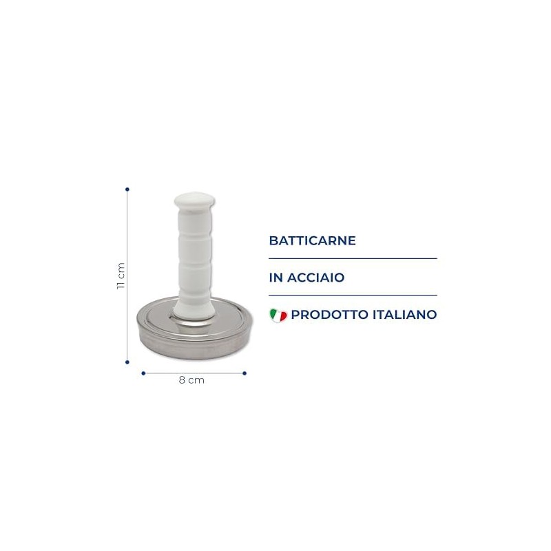 PARODI & PARODI - Steel Meat Tenderiser with Handle with Polypropylene Handle, Smooth Meat Tenderiser Washable, Rustproof, Kitchen Accessories for Thinning Beef, Chicken, Pork