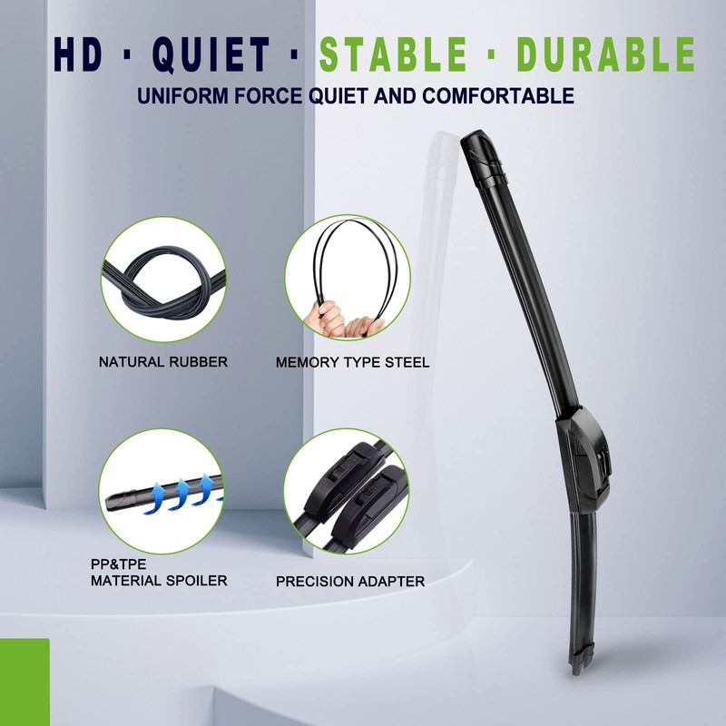 - 【Performance】Windshield wiper blades use specially treated natural rubber, which is noise free and reduces friction.Quick and easy install only takes a few minutes.