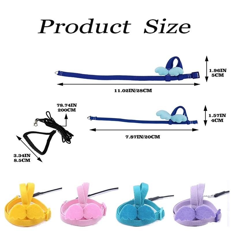 Each bird-walking rope has an angel wing on the back of the same color as the bird-walking rope. When the bird wears it, it will make the bird more cute and interesting.