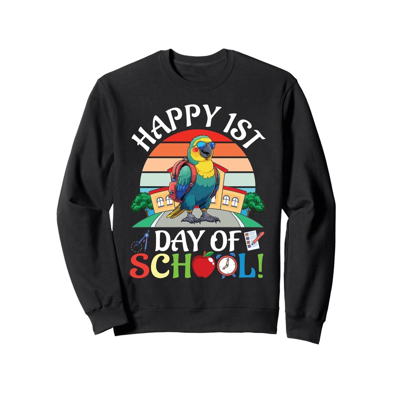 Parrot With School Backpack Books Happy First Day Of School Sweatshirt