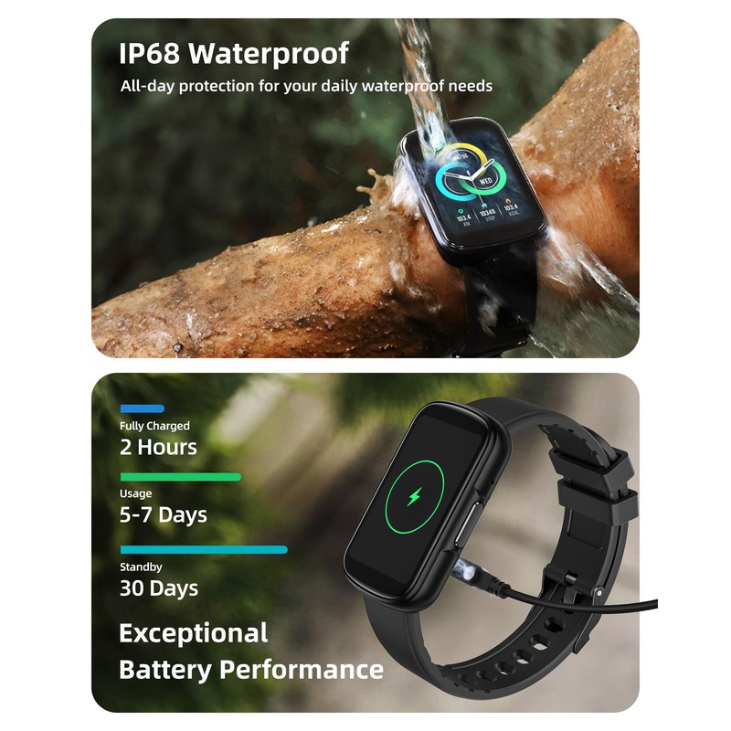 • 【24/7 Activity Tracking and 110+ Sports Modes】This smart watch for men women not only automatically records your steps, distance, calories and active time, but also provides more than 110 sports modes, including running, outdoor cycling, football, etc. It monitors your heart rate in real time during exercise to ensure that every exercise is carried out within a safe and effective range, helping you achieve the best exercise results. With an IP68 waterproof rating, you can sweat as much as you want during exercise, and you don't need to take off your activity watch to wash your hands after exercise.