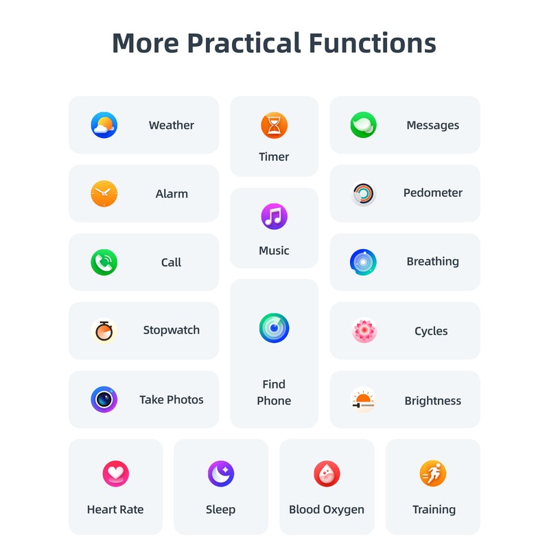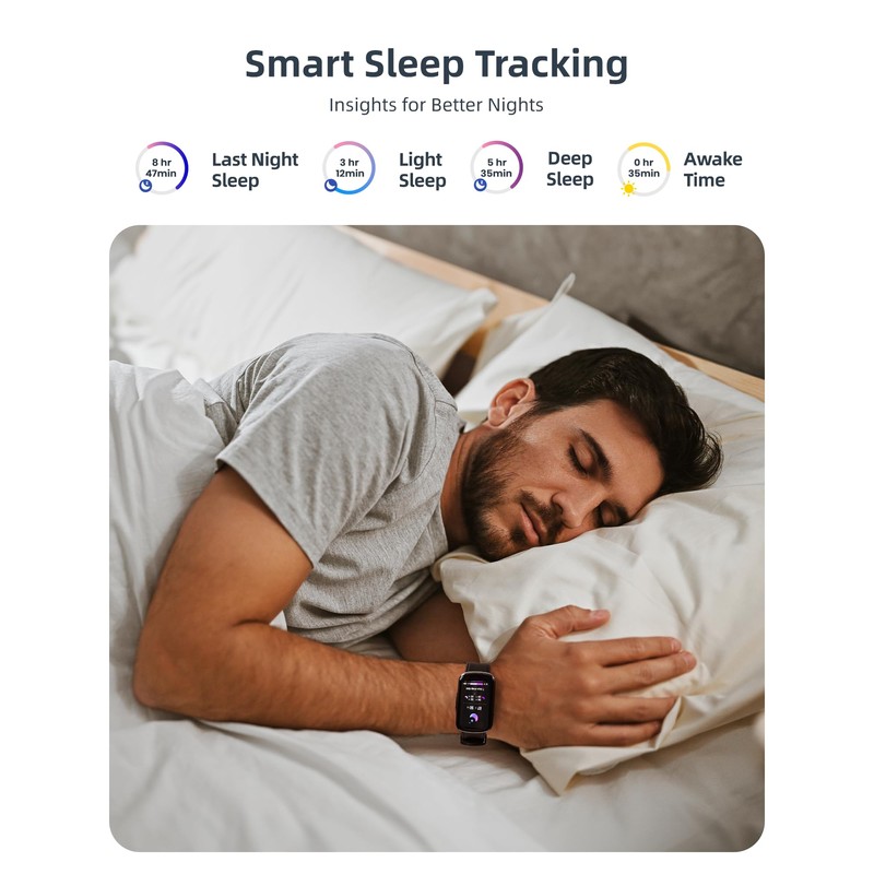 • 【24/7 Heart Rate Monitoring, Sleep Tracker & Blood Oxygen Monitoring (Spo2)】Take charge of your health with this advanced smart watch featuring all day heart rate monitoring and comprehensive sleep analysis. Monitor your heart rate in real-time for optimal heart health, whether you’re at rest or exercising. Explore detailed sleep data on deep sleep, light sleep, and wake times to help you wake up refreshed. Additionally, the manual blood oxygen monitoring (SpO2) allows you to effortlessly check your blood oxygen levels, keeping your body in peak condition. It's time to buy yourself and your family a fitness tracker that focuses on health and exercise!