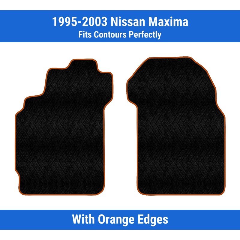 PartCatalog Orange Edge Custom Fit Front Carpet Floor Mats, Black, Compatible with Nissan Maxima 2003 2002 2001 2000 1999 1998 1997 1996 1995