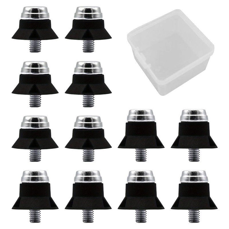 - 【PACKAGE CONTENT】You will receive 12pcs black football shoe studs(includes 2 sizes, 6pcs 13mm+6pcs 16mm, height not includes thread) and 1pc clear plastic storage box. Enough quantity for your daily use and replacement.