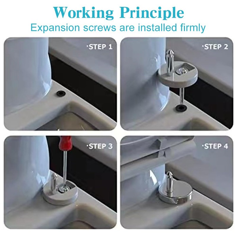 • 【EASY TO USE】Push the toilet seat fixings into the toilet installation hole and tighten it. Turn the screw clockwise to increase friction, greatly enhances the anchoring force, and finally fixed stability.