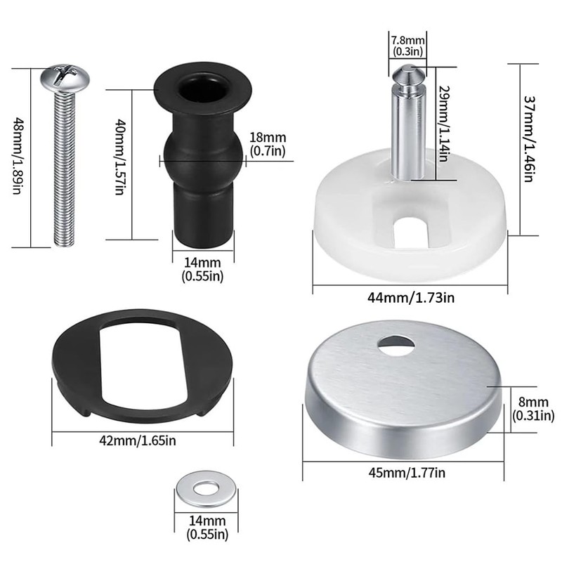 • 【WHAT YOU WILL GET】You will receive 4pcs toilet seat cover screw and 2pcs expansion screw with rubber sleeve, designed for toilet seat hinge, universally fit for most standard toilet seat with top fix hinges, suitable for ceramic hole diameter 15-16mm.