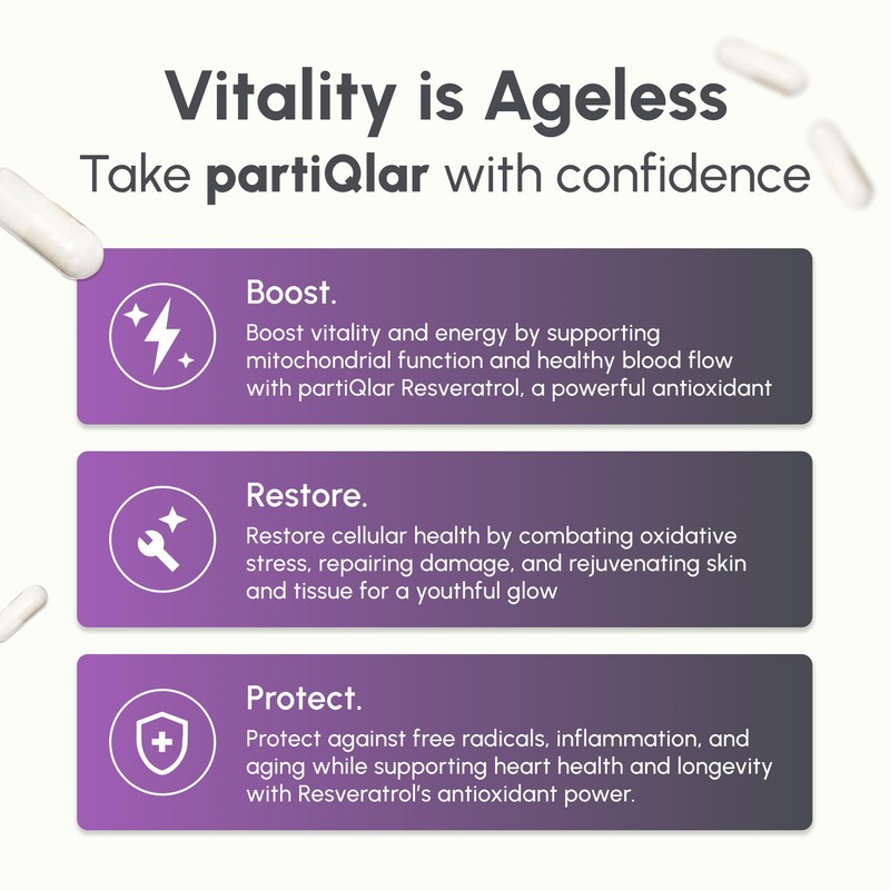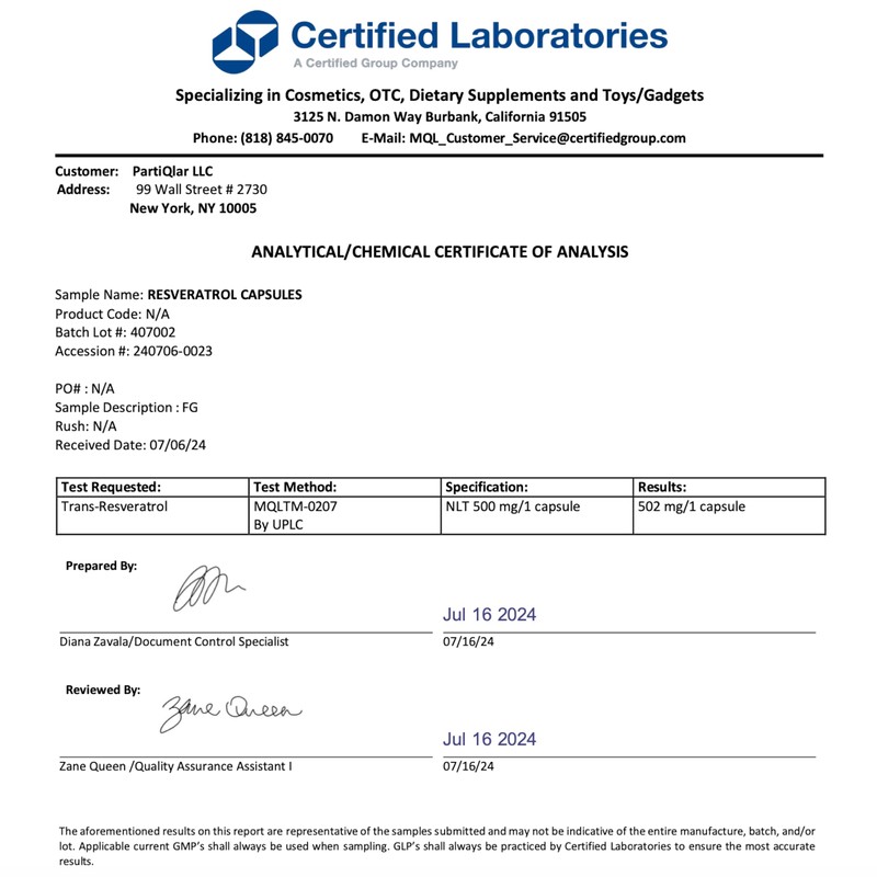 partiQlar High Purity Trans Resveratrol Supplement 500mg - Each Capsule Exceeds 98% Purity - 3rd Party Tested - Vegan - Sirtuin Activating and Cell Protecting Supplement - 60 Capsules
