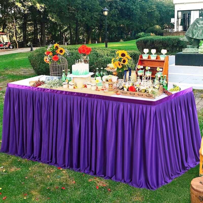 - Material: Purple Polyester table skirt made of 100% silk polyester available for superior softness and shine, Plain and simple table cloth used smooth durable and reusable