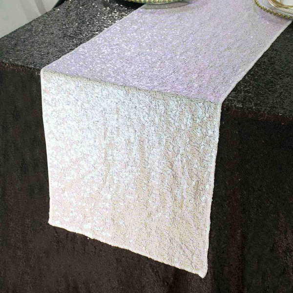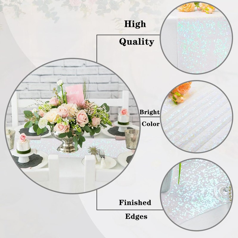 Partisout 108" Iridescent Sequin Table Runner 2-Pack, Elegant Glitter Table Decor for Weddings, Parties, Rectangle Tables & Seasonal Home Decor (Shimmering White)