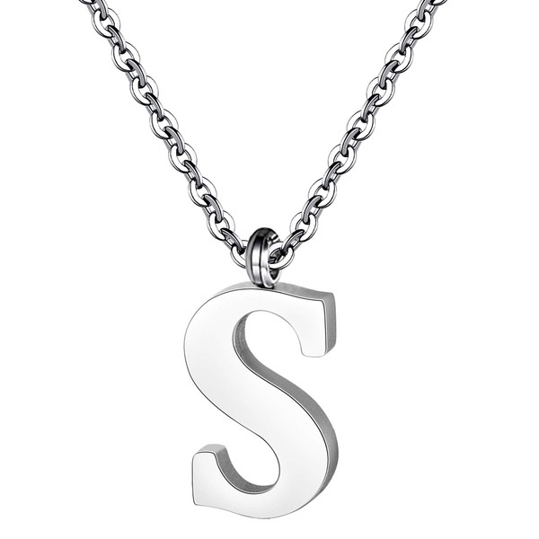 PARTNER Stainless Steel Silver Initial Necklace Alphabet Pendant Necklace 16" with 2" extender Women letter Necklace (Silver Initial S)