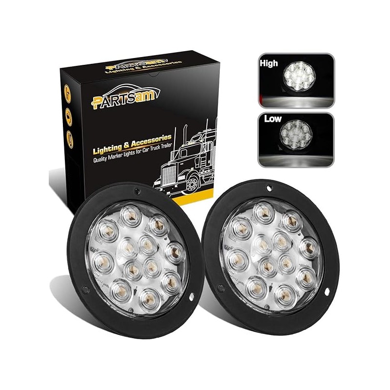 Partsam 2PCS 4" Waterproof Backup Reverse Light Flange Mount 12 LED Truck Trailer RV White