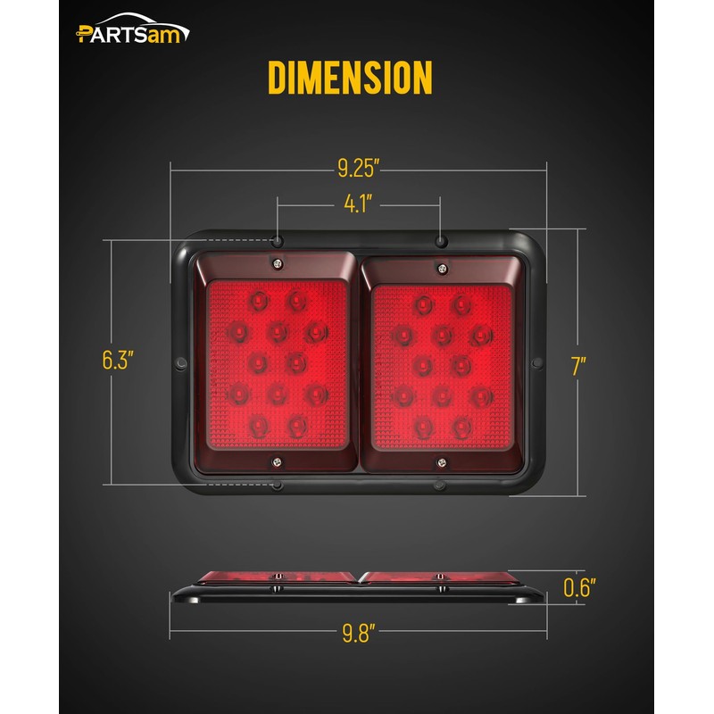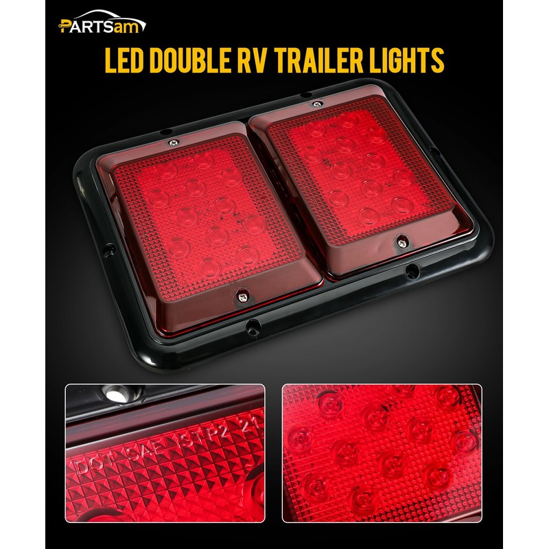 Partsam 2X Double RV Trailer Camper Tail Lights 24-2835 LED Horizontal Vertical Surface Mount Double Trailer Light Taillight Red Lens Red Light Black Base 12V IP67 Waterproof