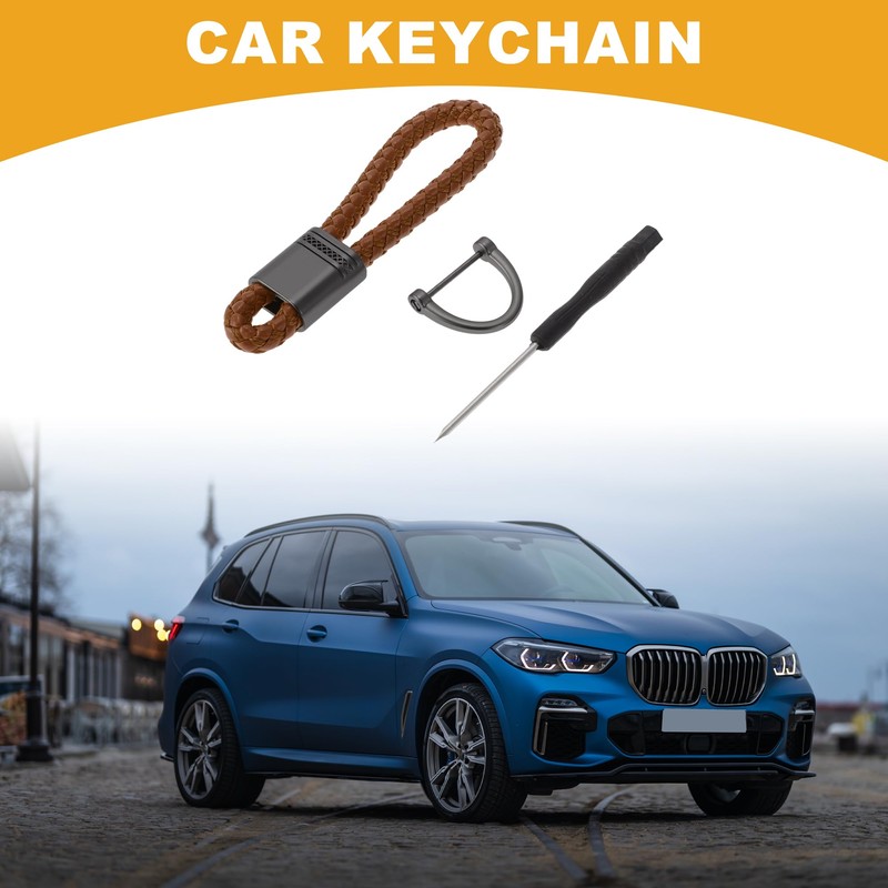 Partuto 1 Set Universal Car Keychain - Car Home Women Men Key Chain with Ring Durable - PU Leather Zinc Alloy Brown