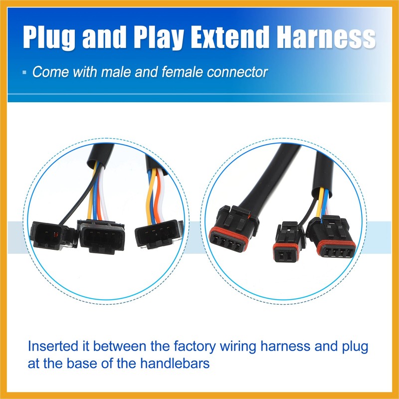 - Usable: [Function of Extension Wires] Help to install a taller handlebar while provide extend CAN wiring harness, and extend your stock wiring. Come with male and female connector, inserted the connector between the factory wiring harness and plug at the base of the handlebars.