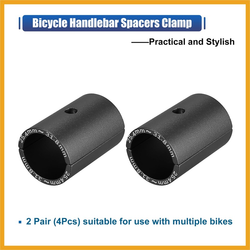 - Applicable: [Package] Include 2 pair Black auminum alloy shims (4 pcs), this covers the front and back of the 25.4 bike bar to make it fit a 31.8 stem. Check product size before purchasing. Check relevant install video when you in doubt.