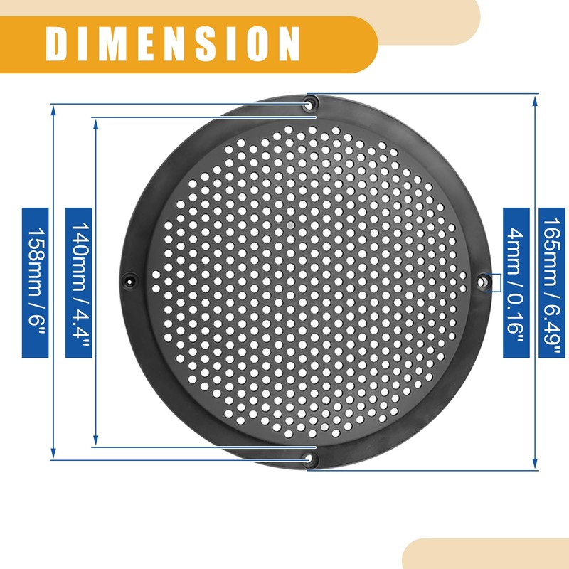 - [PRODUCT DIMENSION] Fit for Speaker Diameter: 140mm / 5.4'', Screw Hole Diameter: 4mm / 0.16'', Diagonal Center Hole Distance: 158mm / 6.2'', Size: 165x16mm / 6.49''x0.63''(D*T). Please actually measure the size of your car size before purchasing.