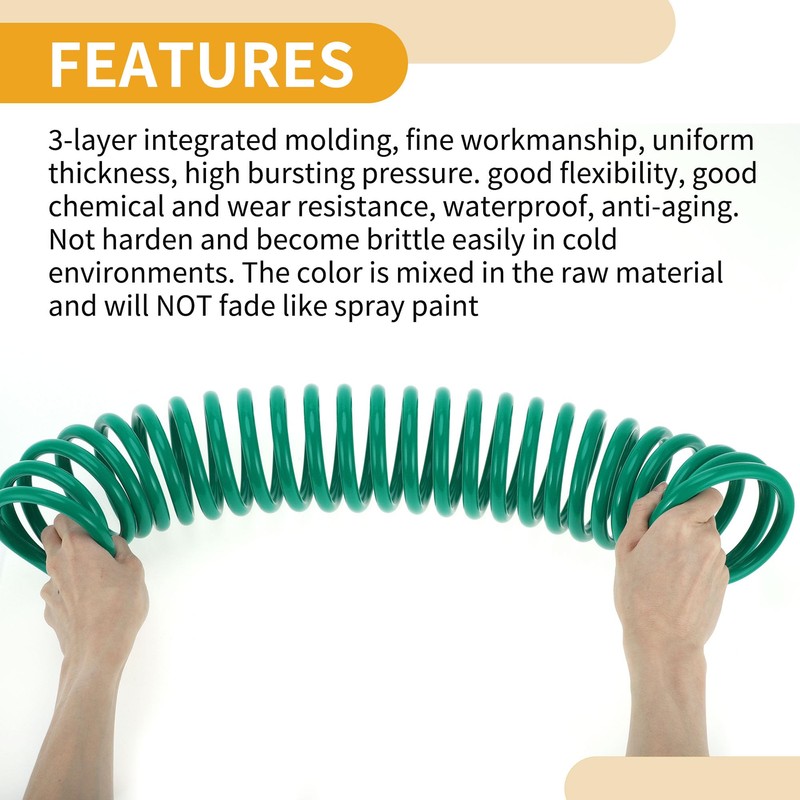 - Product Highlights:Trailer air brake pipes are designed to withstand the high pressure of the braking system.The fittings of the air brake pipes must be secure to prevent leaks and ensure proper functioning of the braking system. The air brake coiled hose is equipped with a secure anti-kinking design, allowing for easier installation in confined spaces. This feature enables better adaptation to the semi-truck during telescopic turns.