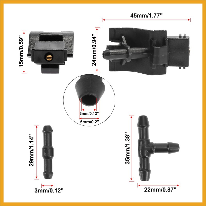 - Applicable: [Package Included] 2 x Windshield Washer Nozzles, 1 x 2 Meters Windshield Washer Hose, 4 x Windshield Wiper Hose Connectors.