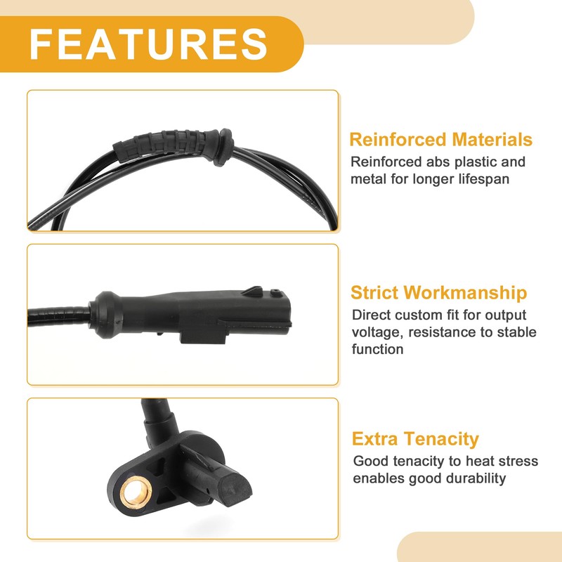 • Product Highlights: Our reinforced wheel speed sensor will keep your car from skidding or sliding when you brake suddenly. You will get accurate and rapid signal measurement of wheel speeds to optimal braking performance.