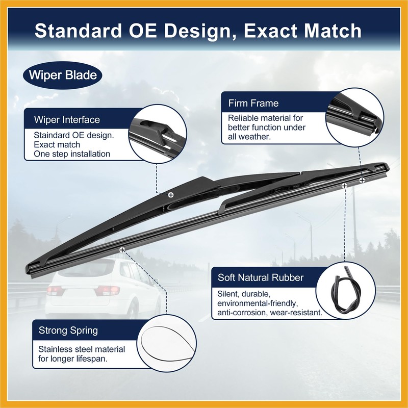- Comfortable: 310mm 12 inch rear wiper blade and rear wiper arm