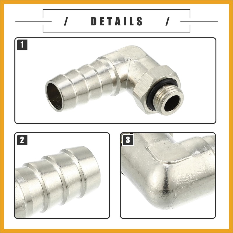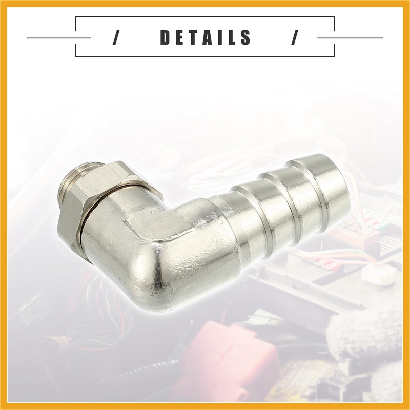 Partuto Universal Car 90 Degree Brass Fitting Hose Adapter, Hose Fitting, 10mm 3/8" Barb to Male G1/8" BSP BSPT, Durable, Brass, Silver Tone Replacement