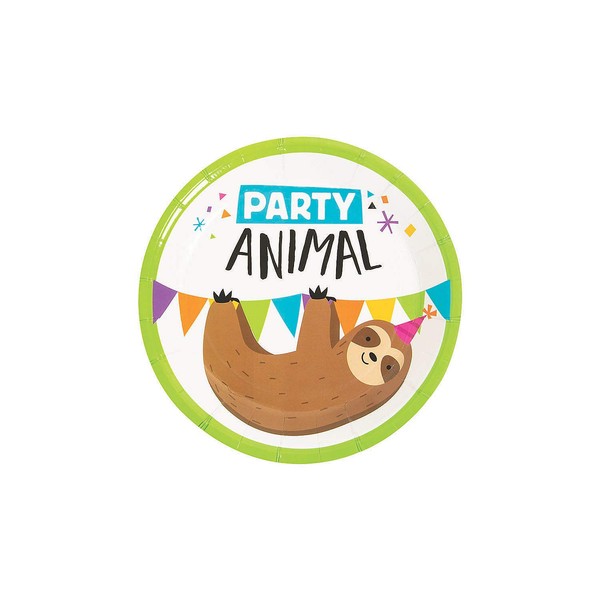 - Slow…you got a birthday bash to plan huh. Our dessert plates are just what you need. Adorable and awesome for party supplies these paper plates are printed with a sloth just hanging around and ready to celebrate in style. Unlike the real tropical forest animals these furry guys will get your party moving as guests will rush to use these durable and disposable plates to dish out desserts of all sorts. Sloth aficionados you’ll wanna get your claws on these. (8 pcs per unit) 7