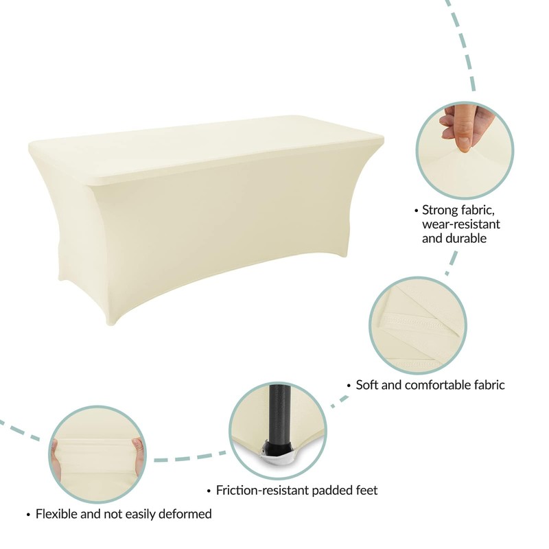 • đŸ„‚ă€Washable and Reusable】: Spandex Table Covers Are Easy to Care. You Only Need to Wash Them in the Washing Machine with Cold Water and Household Detergent. 6ft Spandex Table Cover Can Be Washed and Used Multiple Times Without Ironing.