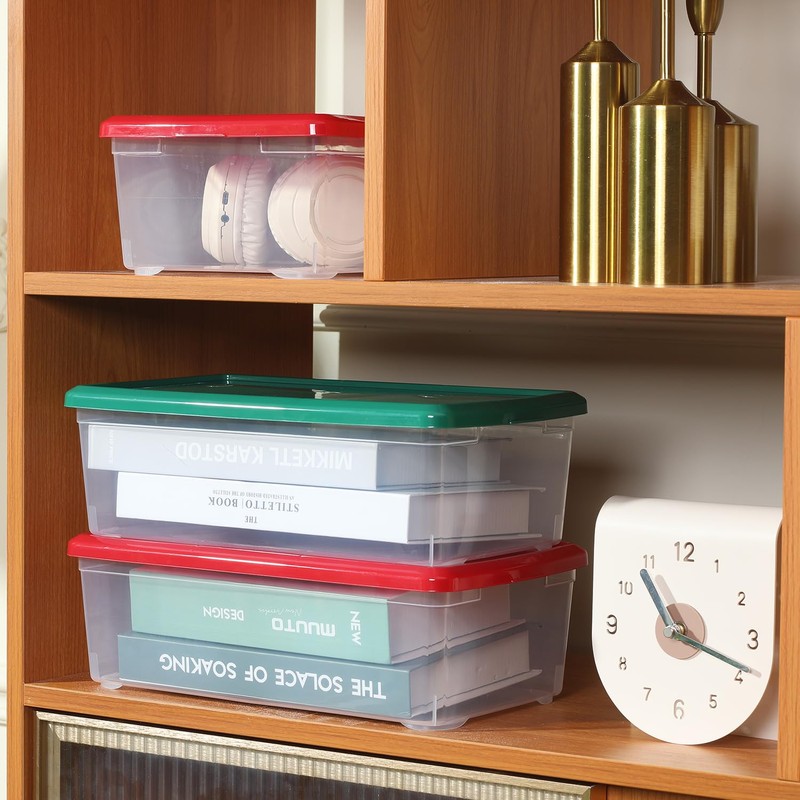 Party Club of America Stackable Clear Plastic Storage Bins with Lids Organizer Containers Shoe Boxes With Lids 12 Packs 6 Quart Latching Storage Box Clear Storage Bins Shoe Boxes (Red green)
