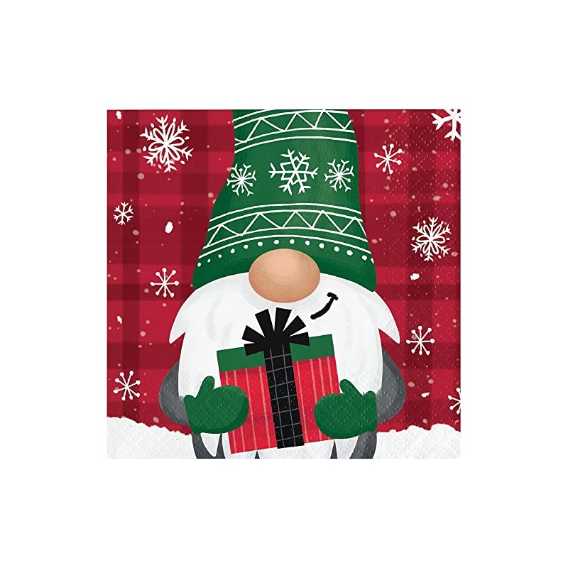 Party Creations Christmas Gnomes Themed Party Supply Pack | Bundle Includes Paper Dessert Plates & Napkins for 16 People | Holiday Gnomes Design