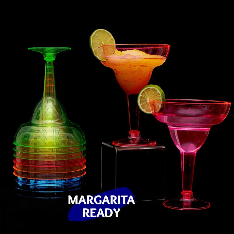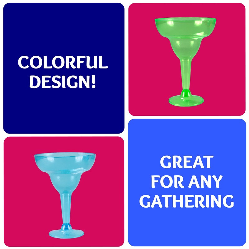 Party Dimensions Party Dimensions Neon 12oz plastic Margarita Cup, mix of 4 colors, 12 Count. Designed for all occasions, banquets, parties, upscale catering and home. Disposable Product.