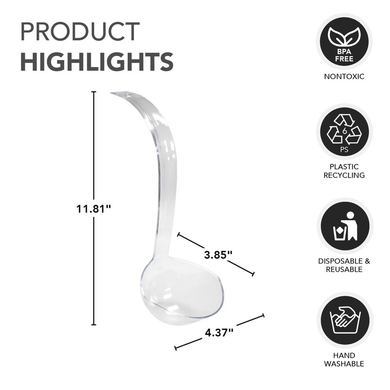 - Party Essentials heavy duty, crystal Clear plastic 5-ounce Ladle