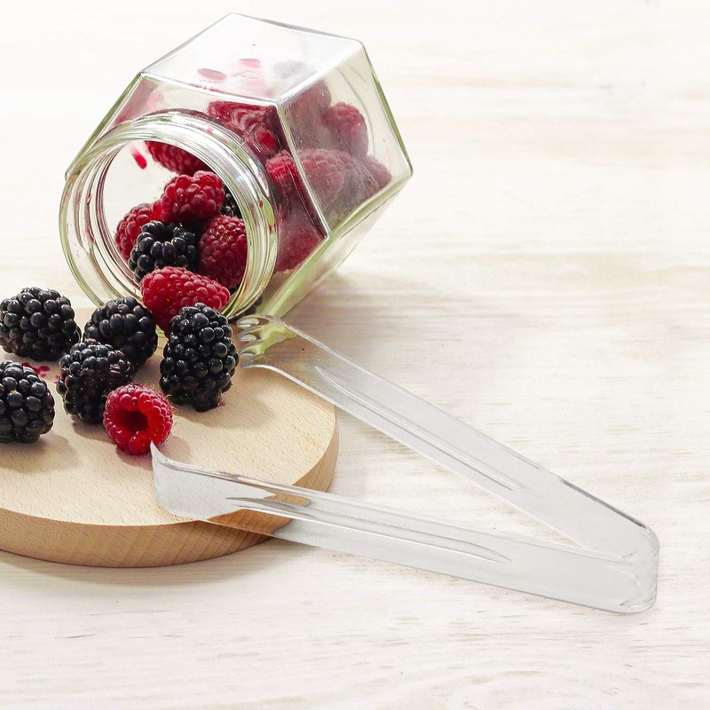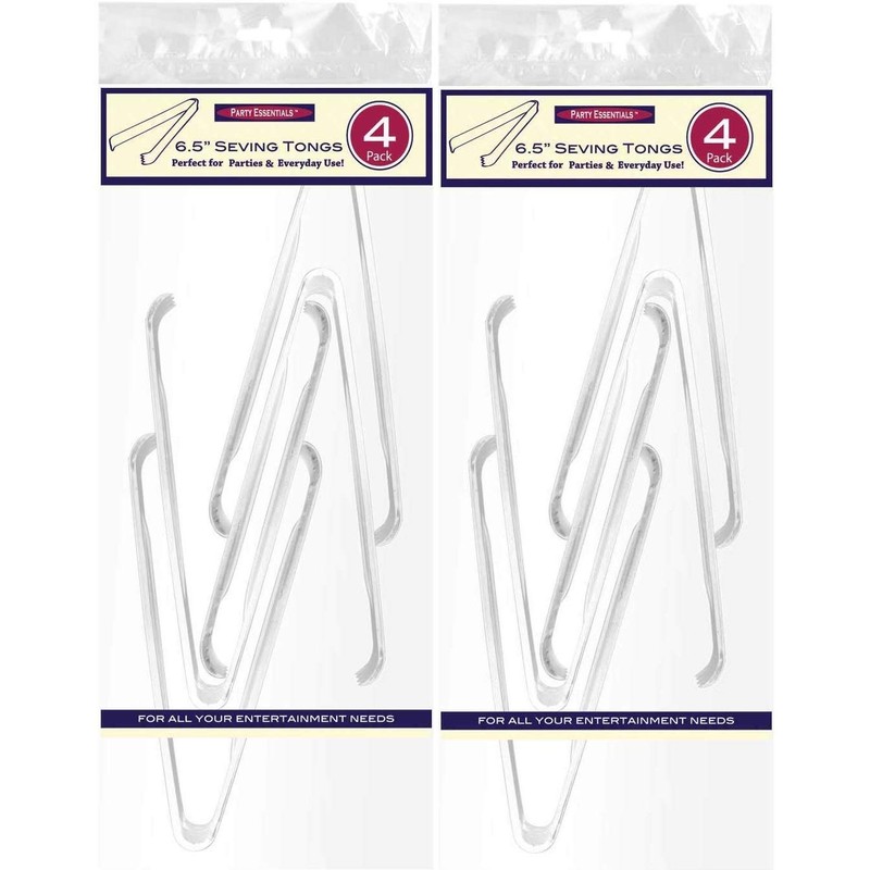 - Pack of 8 hard plastic 6-1/2 inch clear serving tongs is perfect for serve-yourself party platters, antipasto trays, ice buckets and more