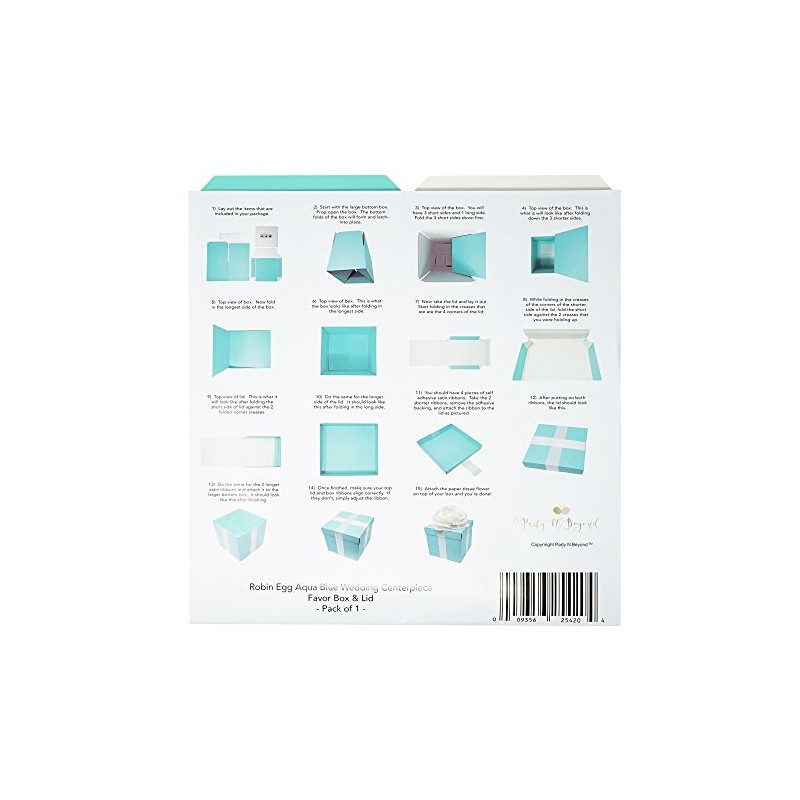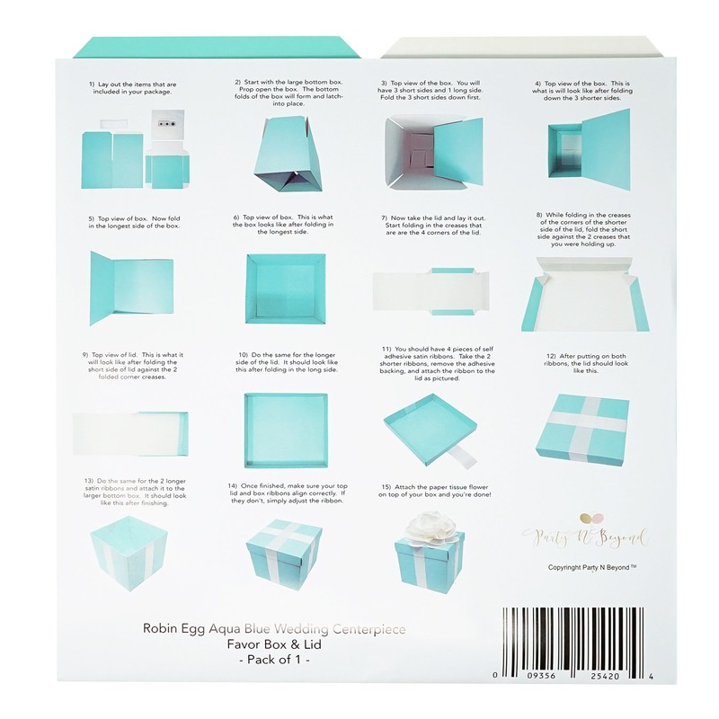 Party N Beyond Premium Large Centerpiece Textured Paper Gift, Favor, and Envelope Box - 6 x 6 x 6 Inch - Includes Paper Bow & Self Adhesive Ribbons, Robin Egg Blue (10 Count)