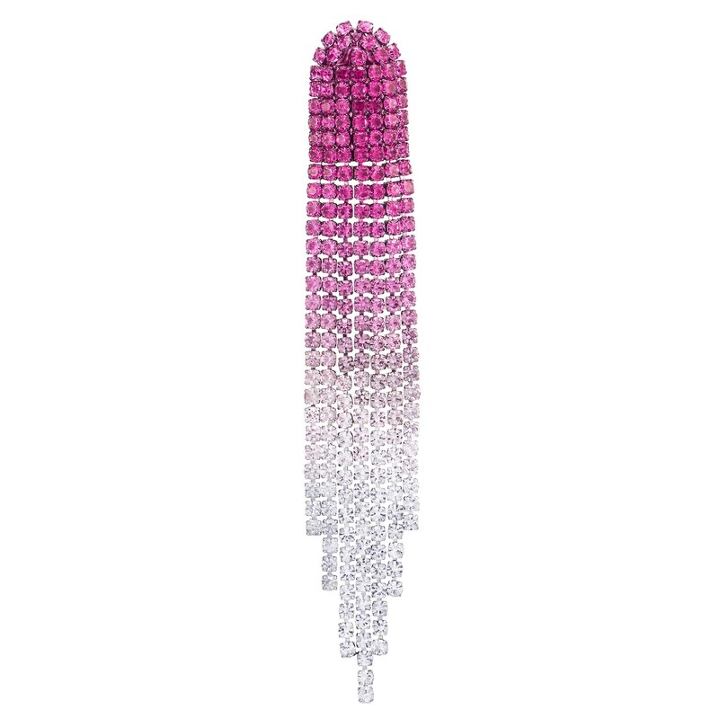 - Party Statement Earrings Pink and White Rhinestone Cluster Long Chain Tassel Dangle Glamorous