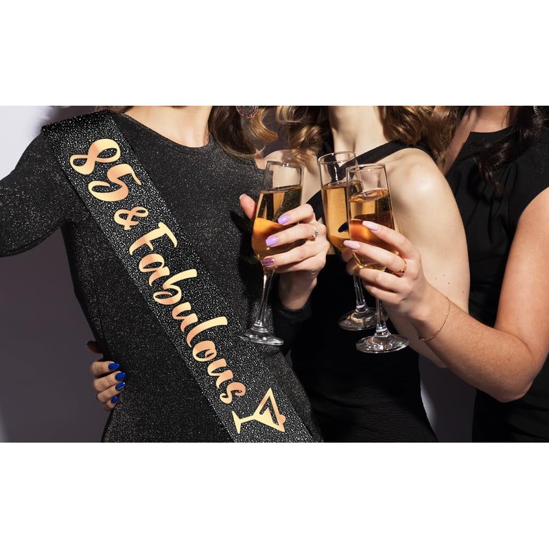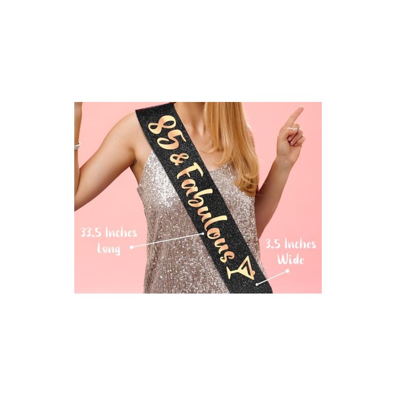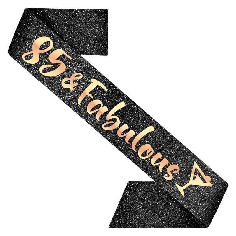 - PartyForever 85th Birthday Sash 85 and Fabulous Decorations for Her Made of Rose Gold Glitter Fabric with Black Letters for Women