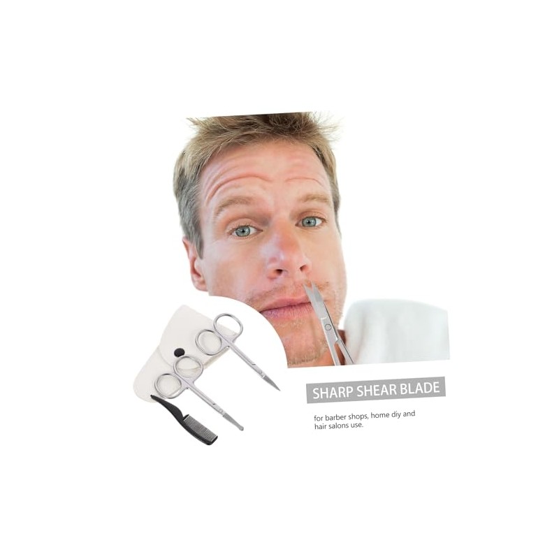beard shears This stainless steel beard scissors set can trim hair with ease.mustache trimming scissors Its distinctive and handle design allows the scissor be comfortably handled and delivering a confident beard cut every time.beard scissors The scissor is made of stainless steel material, which is durable enough for lasting use