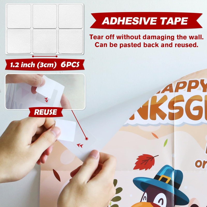 - BEST THANKSGIVING FAVORS: Your satisfaction is our priority, Poster made out of glossy paper stock. sticker Removable for repeated use. adhesive tape which can be used to stick posters anywhere, this game is sure to help you create a fun and memorable thanksgiving.