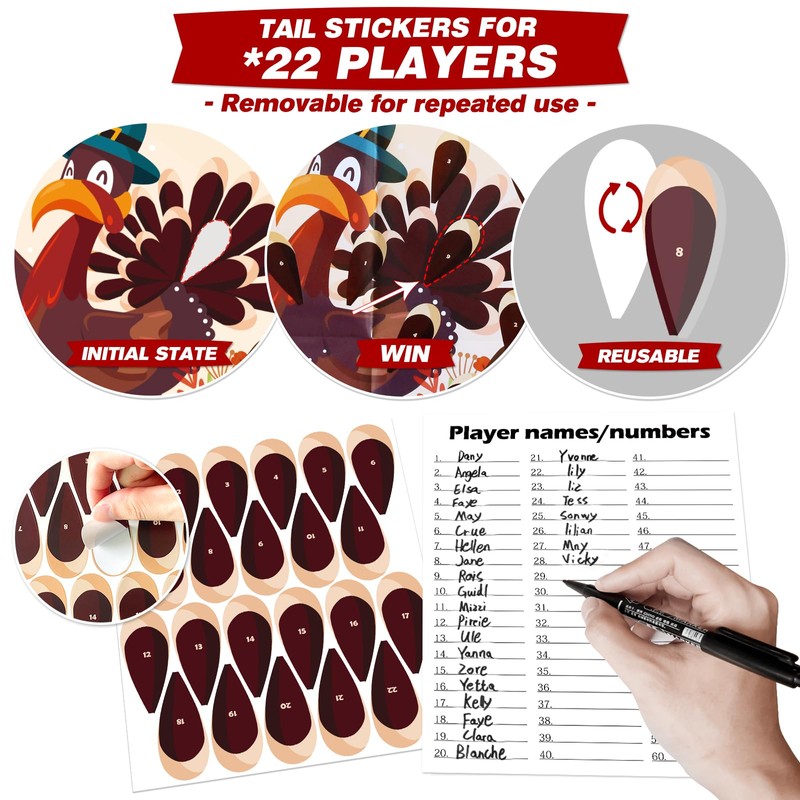 - PIN TAIL ON THE TURKEY: Stickers has numbers that can help you track who the team members are. It is an ideal choice for a thanksgiving, thanksgiving birthday party, classroom games school activities. It can promote the friendship of children and exercise their perception ability.