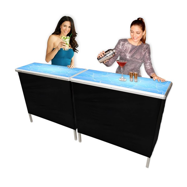 - DOUBLE PARTY BAR (Iced Design) - Iced design surface & Black skirt for the most formal events or keeping it cool with some simple cocktails. Easily connect either inline or L-shaped with included squeeze clamps.